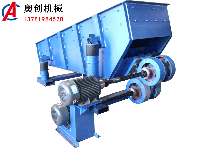往復(fù)式給料機簡介:往復(fù)式給料機是利用曲柄連桿機構(gòu)拖動下傾5°的底板在輥上做直線往復(fù)運動,當(dāng)電動機開動...